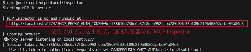 npx @modelcontextprotocol/inspector启动成功后,浏览器将自动打开调试页面(如未自动打开,可手动访问 http://localhost:6274)。