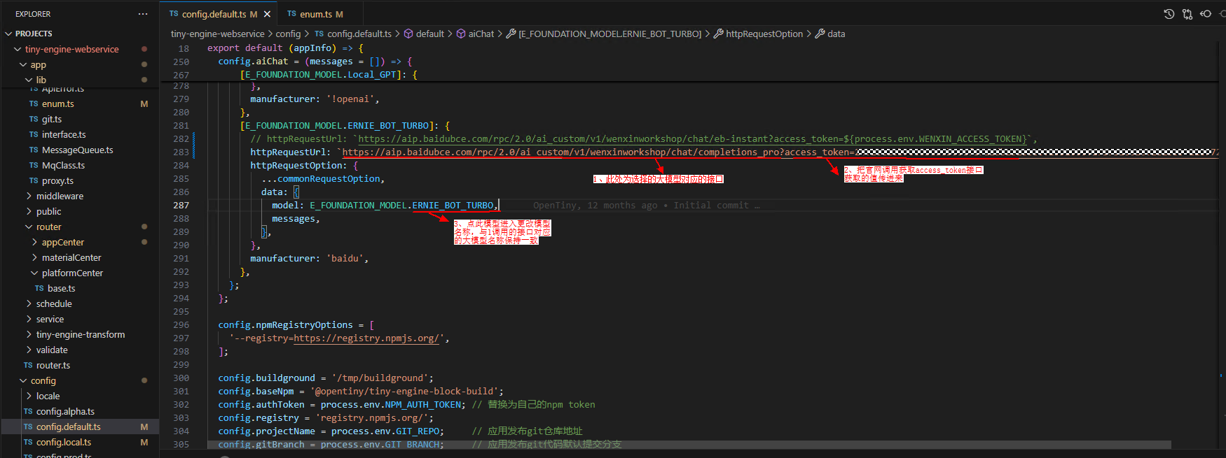 1、在tiny-engine-webservice/config/config.default.ts文件变更如下