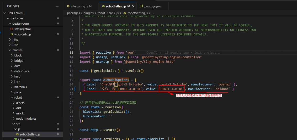 在tiny-engine/packages/plugins/robot/src/js/useRobot.ts文件改动如下